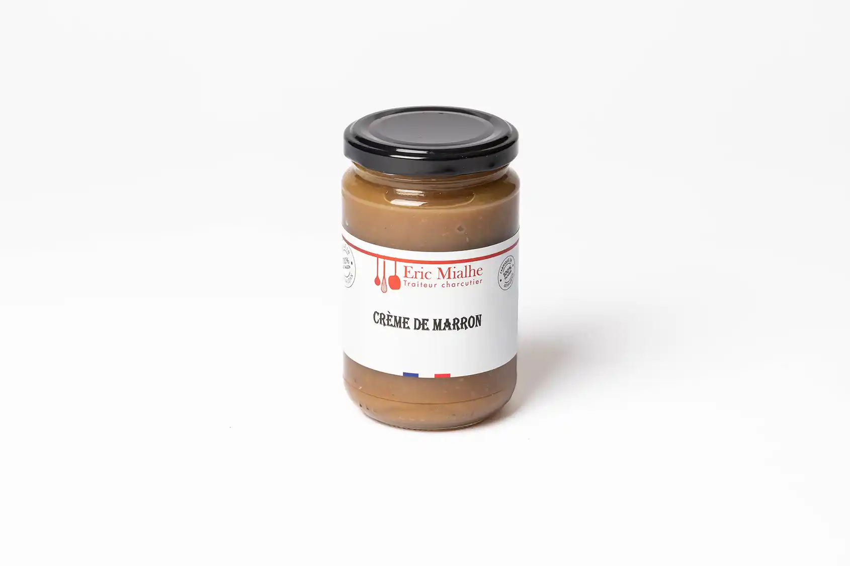 Crème de marron artisanale, une préparation minutieuse qui met en valeur le savoir-faire traditionnel : des marrons sélectionnés avec soin, cuits lentement pour révéler toute leur douceur, offrant une texture exquise et un goût authentique.